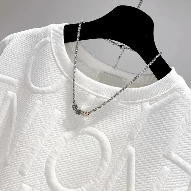 Men’s And Women’s Three-dimensional Letters Trendy Round-neck Non-hoodie Thin Loose Long Sleeve Top